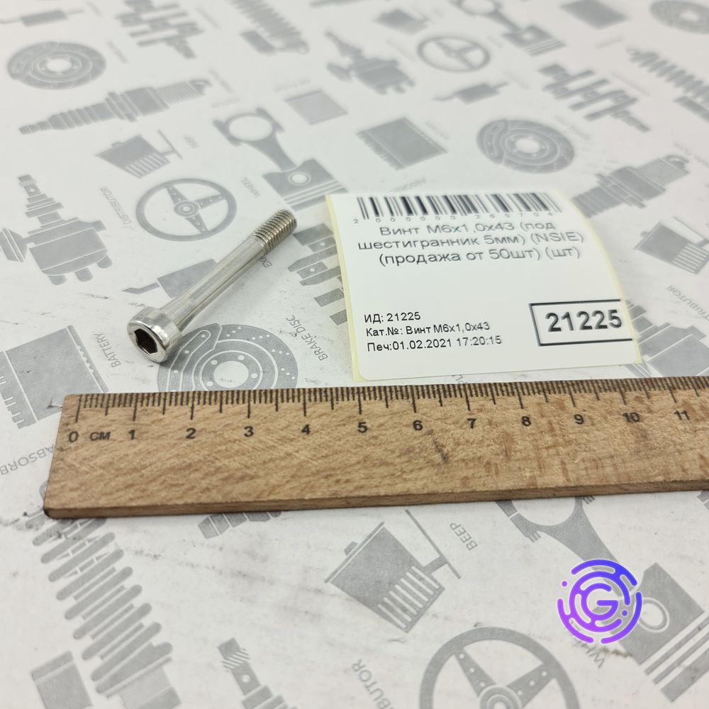 Гвинт М6х1,0х43 під шестигранник 5мм